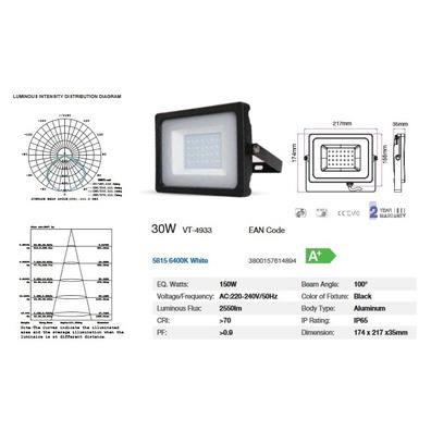 iva incl.30W LED Floodlight Black Body SMD 6400K "Blanca" V SK4-402