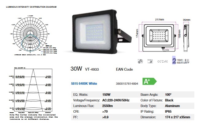 Al elegir el 30W LED Floodlight Black Body SMD 6400K "Blanca" V SK4-402, estás optando por una solución de iluminación sostenible que reduce tu huella ambiental y te proporciona una iluminación de alta calidad y duradera. Disfruta de una iluminación eficiente y brillante sin comprometer el rendimiento.