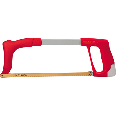 iva incl.De línea innovadora y ergonómica. Empuñadura, apoya mano delantero y tensor de la hoja fabricados en aleación de aluminio fundido pintados en rojo. Cuerpo de acero rectangular 20x10x3,5 mm, con baja deformación a la flexión, para garantizar una elevada rigidez en la hoja. Dos posibilidades de corte: recto y a 40º. Equipa hoja de sierra HSS bi-metal de 300 mm. 650 g.