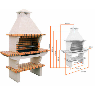 Barbacoa de granito con grifo de Casa Santos. Con un diseño elegante y funcional, esta barbacoa incluye dos pequeñas encimeras a ambos lados para poder colocar cualquier utensilio necesario durante su uso. En la parte inferior, dos pequeños soportes también serán de utilidad para almacenar madera, carbón, etc...
