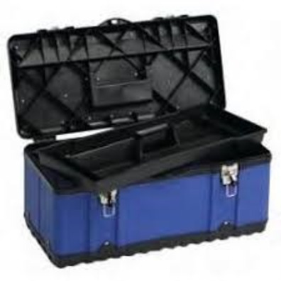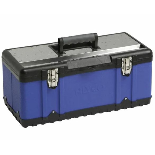 Organiza y ahorra espacio con esta caja metálica con refuerzos de plástico fabricada con chapa plegada de 0,6 mm. La caja de herramientas metálica reforzada es muy robusta, tiene protectores antichoque, cierres metálicos y la bisagra tiene pasador metálico.