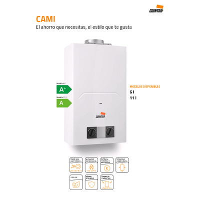 - Alta Eficiencia: El calentador Gas CAMI de COINTRA garantiza un rendimiento eficiente en la producción de agua caliente, lo que se traduce en un menor consumo de gas y ahorro energético.