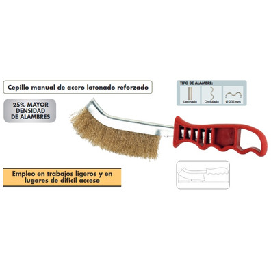 - Cepillo manual de Acero Latonado reforzado con mango de plástico.