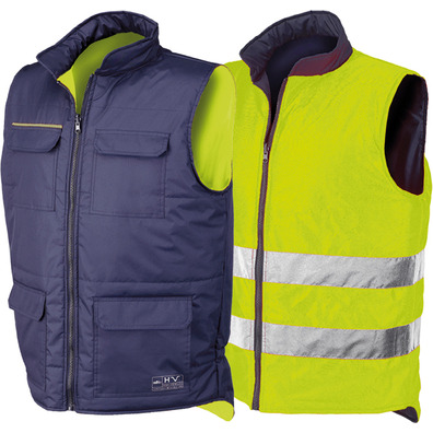 Reversible, para todos aquellos que pueden estar cambiando de trabajo en la calle, utilizando un reverso para garantizar la alta visibilidad y el otro lado para dar un aspecto sobrio o deportivo.Cuatro bolsillos aplicados en el lado azul y un portateléfono en el lado de alta visibilidad. Composición: poliéster.