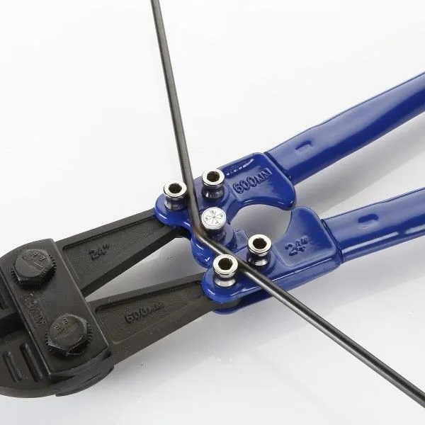 Cizalla, Cortavarillas o Cortabulon 600 mm, de calidad profesional, fabricada en acero especial al Cromo-Vanadio-Molibdeno. La apertura de los filos de corte es regulable, estos filos, además están endurecidos por inducción.