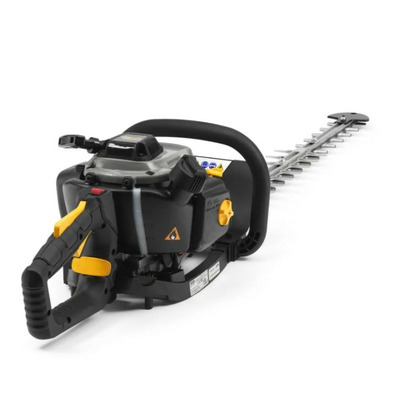 - Cortasetos de gasolina de 22,5 c. c., con hojas de doble cara de 70 cm y manillar con giro. Peso: 5,6 kg.