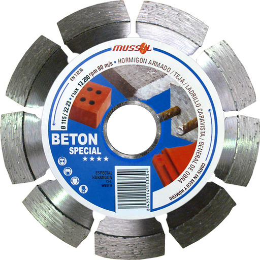 iva incl.Discos Diamante General Obra Beton Special Ø 115mm Eje 22.2mm MUSSOL