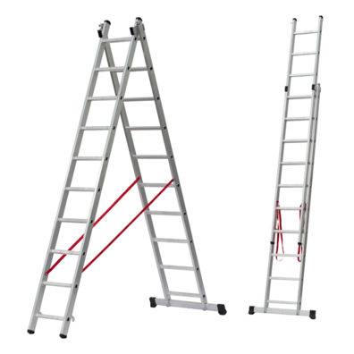 - Escalera industrial profesional de aluminio de 2 tramos transformable.