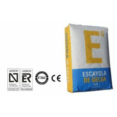iva incl.1palet=64sacos=1088kg##A ( CONGLOMERANTE A BASE DE YESO ) SEGÚN UNE-EN 13279-1# E-35 SEGÚN DENOMINACIÓN TRADICIONAL###DESCRIPCIÓN:# ESCAYOLA DE GELSA E-35 es yeso hemihidratado, fabricado a partir de mineral de yeso natural de elevada pureza.##CAMPO DE APLICACIÓN:# ESCAYOLA DE GELSA E-35 se utiliza para la elaboración de todo tipo de prefabricados (placas, cornisas, molduras,# plafones, tabiques de escayola , ladriyeso, etc.) ,agarre de dichos elementos y para trabajos de repaso y acabado.##MODO DE EMPLEO:##Preparación del soporte# Debe estar limpio de polvo y partículas adheridas, asperezas, manchas de aceite y residuos de productos desencofrantes que puedan perjudicar su adherencia.##Aplicación# En un recipiente limpio verter agua igualmente limpia y a continuación añadir el polvo dejando que se humedezca y proceder al amasado de la mezcla manualmente , dejar reposar la pasta durante cinco minutos ,agitar de forma breve y estará lista para su utilización.##Decoración y acabado# Deberán seguirse las recomendaciones del fabricante de pinturas.# Es recomendable aplicar una imprimación antes de pintar para regular la absorción de la superficie.# Antes de aplicar una pintura, la capa de yeso deberá estar seca y libre de partículas de polvo.##Condiciones durante la aplicación# La temperatura de aplicación no será inferior a 5ºC ni superior a 40 ºC.# La humedad relativa será inferior al 70 %.# En caso de lluvia intensa esta no podrá incidir sobre los paramentos a revestir.##Almacenamiento# Almacenar en ambiente seco evitando el contacto con el suelo, se recomienda cerrar el saco que haya sido utilizado parcialmente.##CARATERISTICAS TÉCNICAS:##Indice de Pureza > 92 %#A/Y:80 %#Tiempo de utilización 13-20 minutos. #Retención tamiz 0,2 mm.:0,1 %#Resistencia a flexotracción:3.5-4.0 N/mm2 #Resistencia a compresión:8-9 N/mm2#Dureza superficial:>70 Shore C#Reacción al fuego:A1#* Los tiempos de utilización pueden variar según distintos factores: relación agua/yeso, temperatura, ph del agua, tipo# de soporte, e.t.c.#