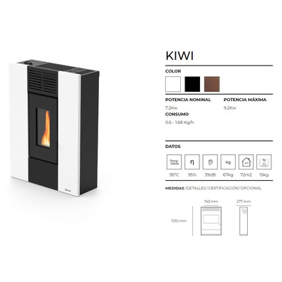 Estufa Pellets Kiwi Blanca (7.2 kW) Pasillera EOSS