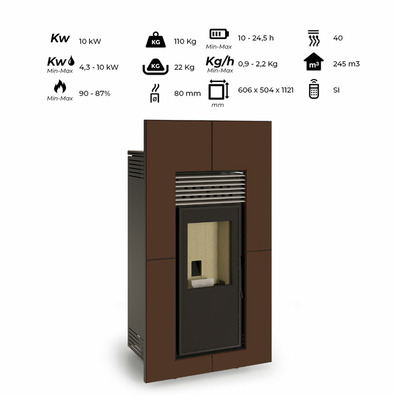 iva incl.Descubre la Elegancia y Eficiencia de la Estufa de Pellets LUNA 10 kW Marrón Vintage de FERLUX