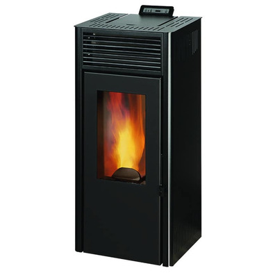Con un acabado en color negro elegante y sobrio, esta estufa de pellets añade un toque de modernidad a cualquier ambiente. Su diseño compacto y cuidado en los detalles la convierten en una pieza funcional y decorativa que se integra perfectamente en diferentes estilos decorativos, desde los más clásicos hasta los más contemporáneos.