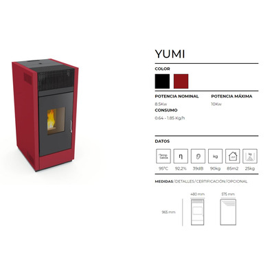 - Comodidad: Las estufas de pellets, como la Yumi Burdeos, son fáciles de usar y mantener, proporcionándote una calefacción cómoda y sin complicaciones.