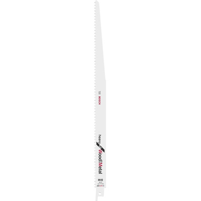 Hoja de sierra sable Heavy for Wood and Metal para realizar cortes curvos rápidos en metal y madera. Gran espacio entre dientes de la hoja (4,3 mm) y dientes triscados para rápidos resultados. Material de calibre medio (1,25 mm) para el mejor equilibrio entre velocidad, flexibilidad y estabilidad de corte. Compatible con todas las sierras sable con vástago de inserción en S.