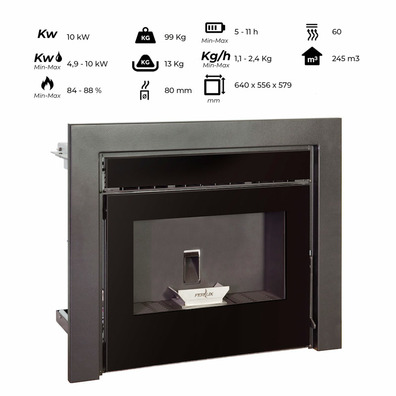 - Potencia de 10 kW: Con una potencia de 10 kW, el Insertable Ulyses garantiza una óptima distribución del calor, asegurando un ambiente confortable en tu hogar.