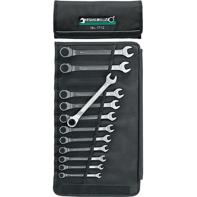 - Conjunto de 17 llaves combinadas de diferentes tamaños para adaptarse a diversas tuercas y pernos.