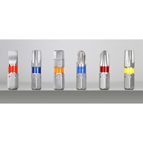 Es un caja de almacenaje práctico robusto que permite tener un acceso fácil a las puntas. Contiene todos los tipos y tamaño populares de puntas incluyendo puntas Torx de seguridad y un portador de puntas magnético que permite una retención segura de las puntas de atornillar.