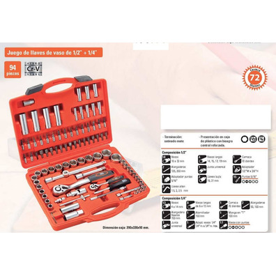 iva incl.JUEGO LLAVE VASOS 1/2" Y 1/4" DE 94 PIEZAS HR Alyco