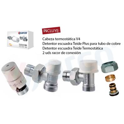 iva incl.Kit de Calefacción con Válvula Termostática Escuadra 1/2"xØ 16 Multicapa Compres ARCO