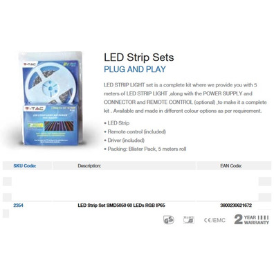 LED Strip Set SMD5050 60 LEDs RGB IP65 /2155+3008+3304/ -- kit V-TAC