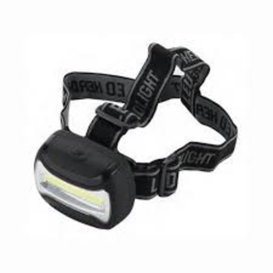 Linterna de cabeza COB LED de 3W. Ofrece una luminosidad de 130 lumen y un alcance de 5 metros.
