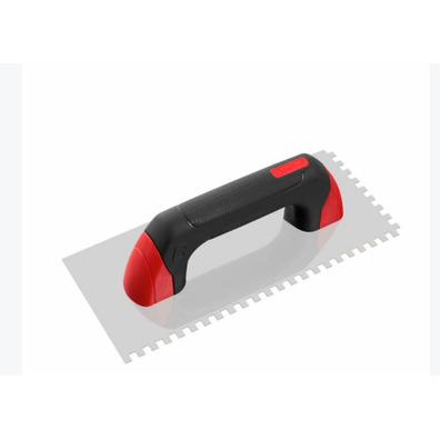 La Llana Dentada 8x8 de Cortag está fabricada en acero inoxidable de alta calidad, lo que le proporciona resistencia y durabilidad para soportar el uso continuo en diferentes superficies. Su mango de goma cerrado brinda un agarre cómodo y seguro, reduciendo la fatiga en largas jornadas de trabajo y permitiendo un control preciso durante la aplicación de los materiales.