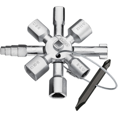 iva incl.Llave multifuncional para sistemas de paso en la ingeniería de construcción (calefacción y fontanería, técnica de climatización y ventilación, electrotécnicos), suministro de gas y agua y sistemas de bloqueo.