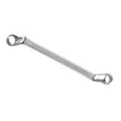 Llave de dos bocas estrella con acodado de 75º. Las bocas de estrella tienen las aristas redondeadas. Fabricada en Acero al Cromo- Vanadio, forjada de una sola pieza, endurecida por tratamiento térmico, y con tratamiento superficial de cromado para evitar la oxidación.