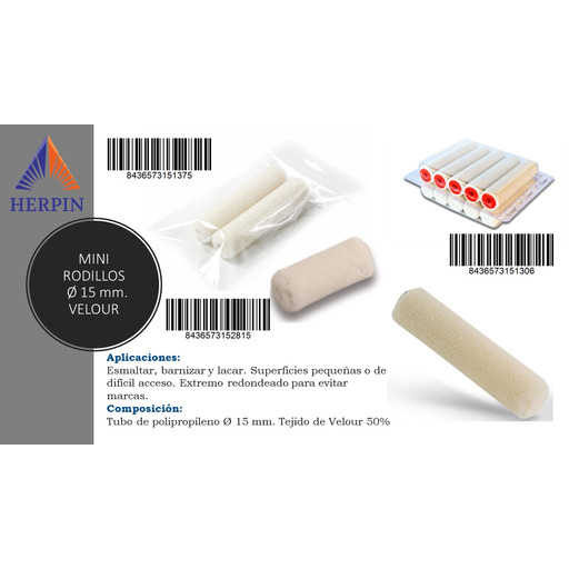 iva incl.MINI RODILLO VELOUR Ø 15 - 110 mm CAJA 10 ud HERPIN
