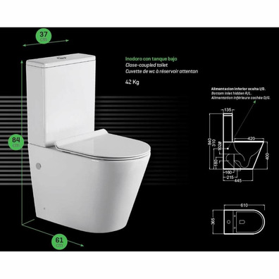 - Funcionalidad y Confort: La tapa amortiguada brinda comodidad y suavidad en cada uso, mientras que el codo facilita la conexión del sistema de desagüe.
