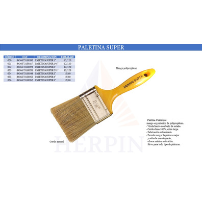 Ya sea que estés renovando una habitación de tu hogar, embelleciendo tu jardín con nuevos colores o trabajando en un proyecto artístico, la Paletina Super 2" Herpin se adapta a todas tus necesidades. Su versatilidad la convierte en la herramienta indispensable para cualquier tipo de proyecto de pintura.