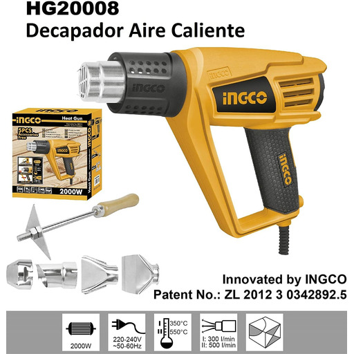 PISTOLA AIRE CALIENTE 2000W INGCO HG20008