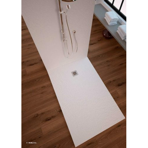 Plato de ducha fabricado en resina de poliéster y cargas minerales de alta calidad. Acabado con doble capa de gel coat antideslizante. La textura simula a la pizarra natural.