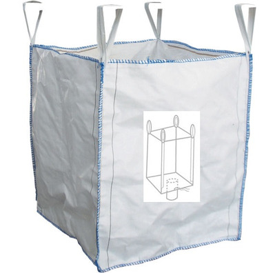 Big Bag con válvula de descarga y cuatro asas para el transporte y almacenamiento. Reciclable y biodegradable. Especial para: Granzas, Piensos, Cereales, Harinas, Áridos, Escombros, Biomasa, Jardinería, Reciclaje…