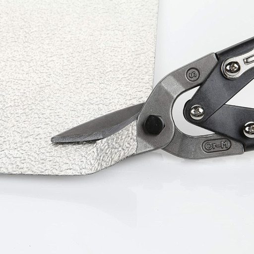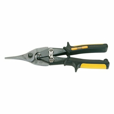 Tijera tipo Aviation snips para corte recto. Corte de chapas tanto de metal como madera, pladur, tubo de plástico. Bocas forjadas fabricadas en Acero al Cromo- Vanadio, lo que le da robustez y larga vida.