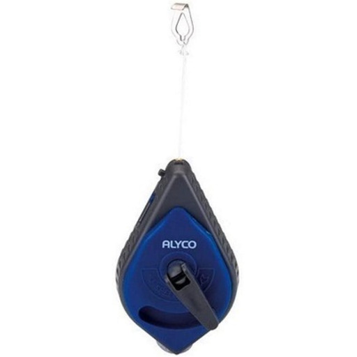 Tiralíneas 30 m con ventana de llenado y bloqueo de cordón para uso como plomada de la marca Alyco. Ventana de llenado de polvo trazador. Posibilidad de bloqueo del cordón trazador (uso como plomada).
