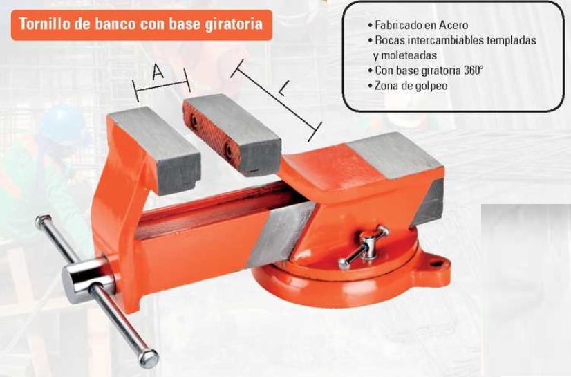 - Tornillo de banco apto para colocarlo encima de una mesa de trabajo, atornillado.
