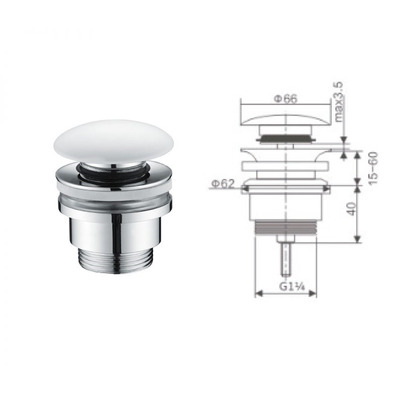 VALVULA CLICK-CLACK BLANCO MATE (lavabos-bides) IMEX VCC007