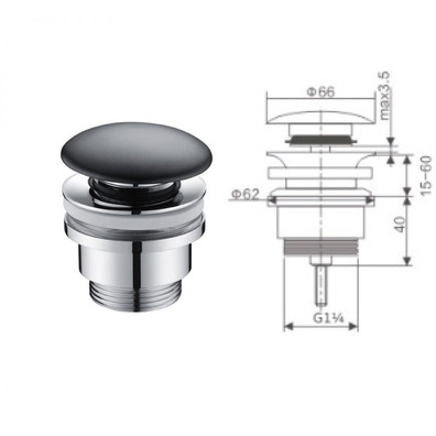 VALVULA CLICK-CLACK NEGRO MATE (lavabos-bides) IMEX VCC008