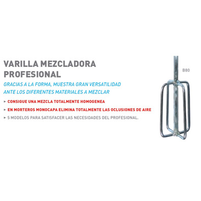 iva incl.VARILLAS MEZCLADORAS - BATIDOR Ø 80x550mm (Univ.l) HEX 10 (taladro) MUSSO B80